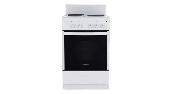 Плита отличается компактными размерами — 85 см в высоту и 60 см по ширине и глубине, что делает её подходящей для любой кухни, экономя пространство и предоставляя все необходимые функции для приготовления пищи. Варочная поверхность включает четыре конфорки: одна из них экспресс-конфорка с мощностью 2 кВт, две стандартные с аналогичной мощностью и одна конфорка на 1 кВт, обеспечивая возможность одновременного приготовления нескольких блюд при различных температурных режимах.