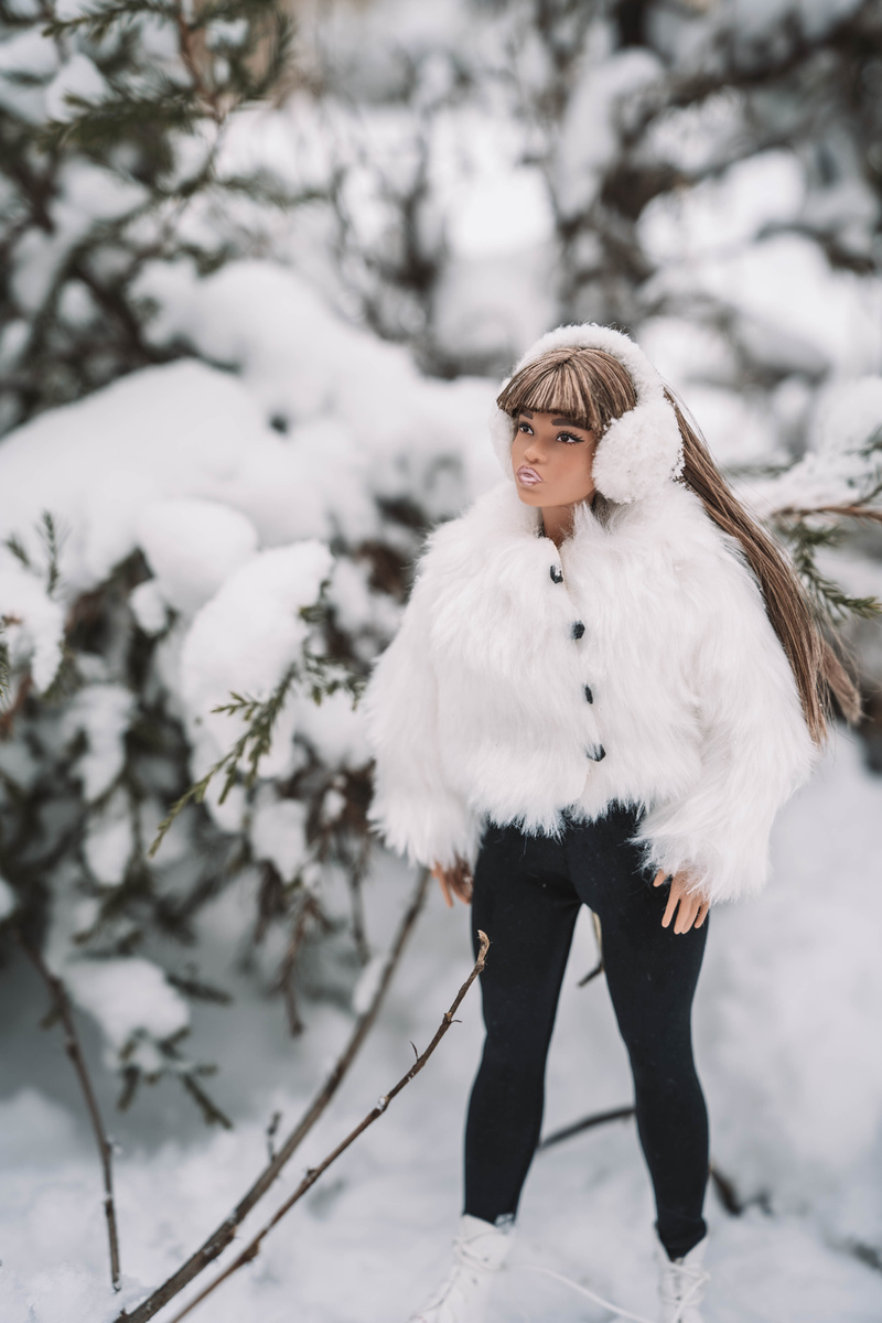 Вообще у меня в коллекции проблема с одеждой стоит особо остро, сама шить не бралась, красиво вязать не получается, зато кукол в коллекции уже более 60, а наряжать их не во что. Скоро придет партия одежды, все же купила кое-что своим красавицам. А пока на помощь приходит @LelikSun , которая отправила Симе белую шубку и наушники для этой фотосессии. Ботиночки у нас есть на все случаи жизни.