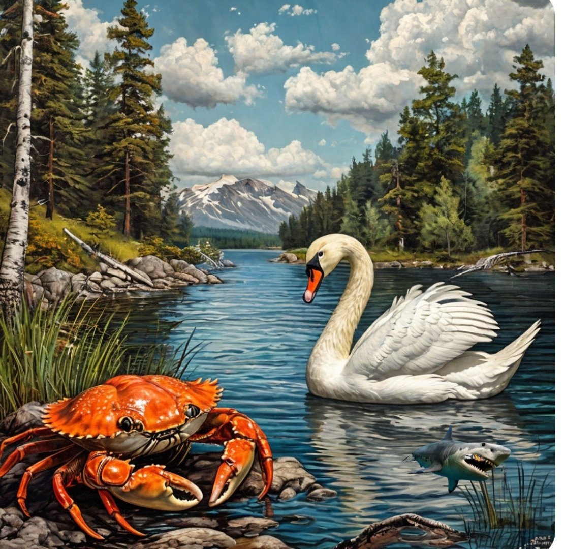Как в басни Крылова "Лебедь, рак и щука". (картинка в начале статьи)