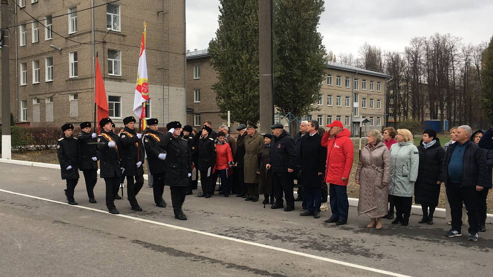 На митинг по случаю открытия мурала к кадетам приехали заместитель министра регионального министерства образования Оксана Кузнецова, первый заместитель начальника Главного штаба Всероссийского военно-патриотического общественного движения «Юнармия», заместитель председателя всероссийской общественной организации ветеранов «Боевое братство», полковник, ветеран боевых действий Виктор Кауров, заместитель председателя Национальной палаты при Губернаторе Воронежской области Ишхан Хачатрян, сотрудники Военно-учебного научного центра Военно-воздушных сил «Военно-воздушная академия» под руководством участника специальной военной операции, Героя России подполковника Ильи Сизова.