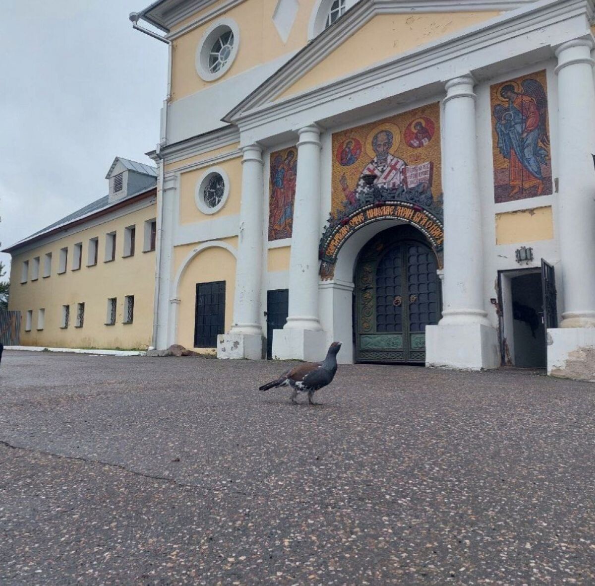 В гости в Николо-Шартомский монастырь, расположенный в Шуйском районе, залетел лесной гость из северных лесов. Речь идет о глухаре - крупной птице из семейства фазановых, отряда курообразных.