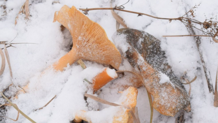 Новосибирский охотник нашел грибы лисички под снегом