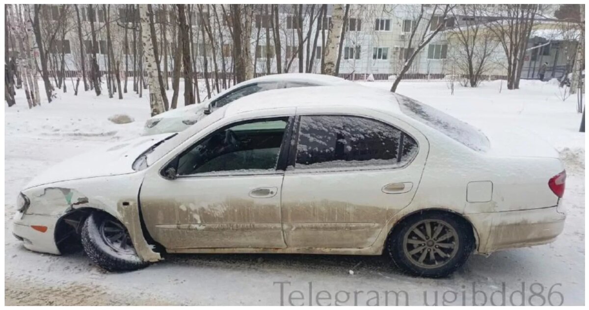 В Сургуте из-за скользкой дороги произошло ДТП: Nissan наехал на дерево