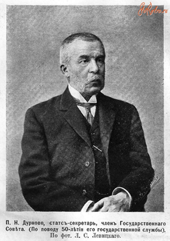 Попытаться остановить потерю Николаем ІІ и его окружением последнего ума предпринял накануне І мировой войны Пётр Николаевич Дурново́ (1842 – 1915), государственный деятель Российской империи, министр внутренних дел в период І русской революции, сторонник самых жёстких мер для подавления вооружённых выступлений против власти, с точки зрения и «прогрессивной общественности», и революционеров (большевиков и эсеров), «царский сатрап и душитель свободы».