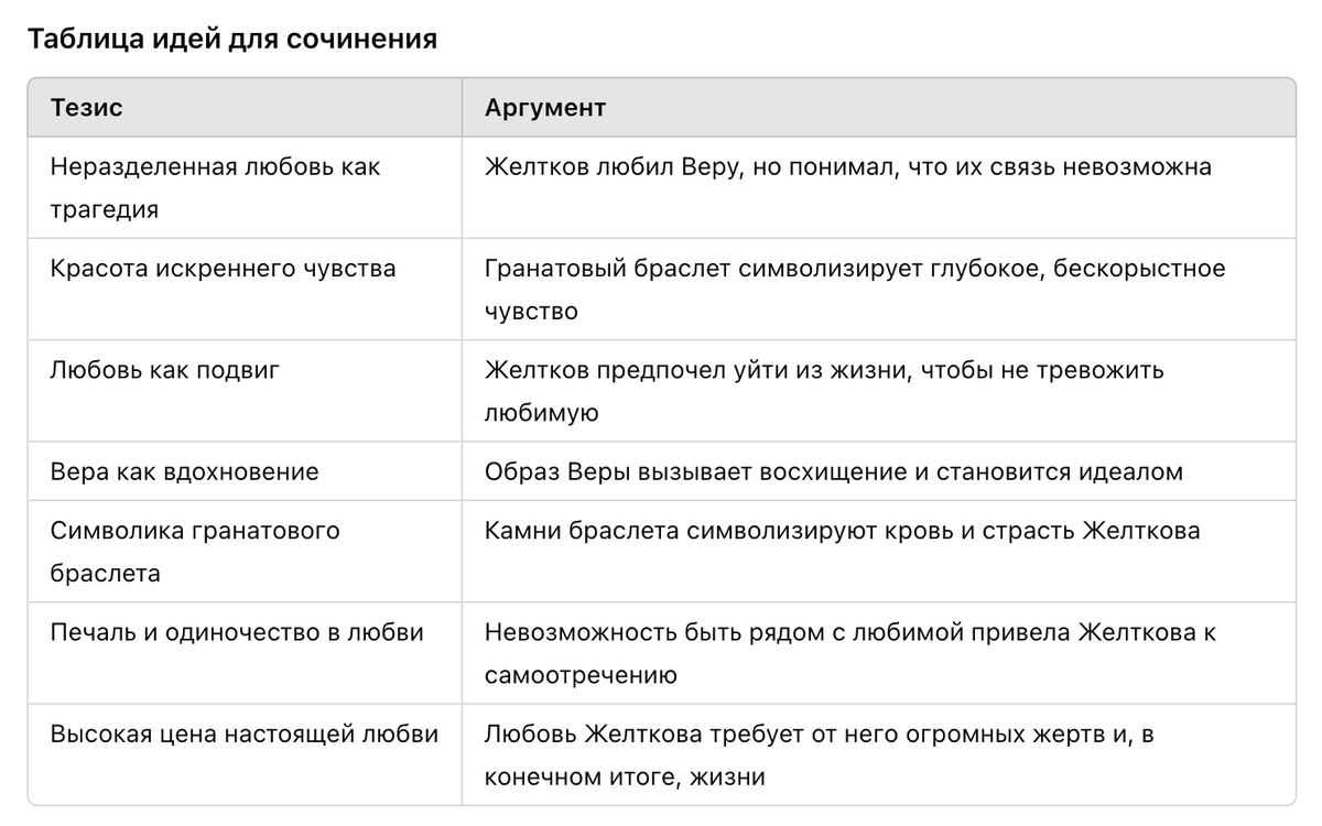 Куприн в своем произведении раскрывает удивительную и одновременно печальную красоту любви, которая не знает границ. Невзаимная любовь Желткова к княгине Вере – это чувство, которое не требует ничего взамен. Его любовь к Вере прекрасна именно своей чистотой и безграничной искренностью, которая, возможно, не так часто встречается в реальной жизни.