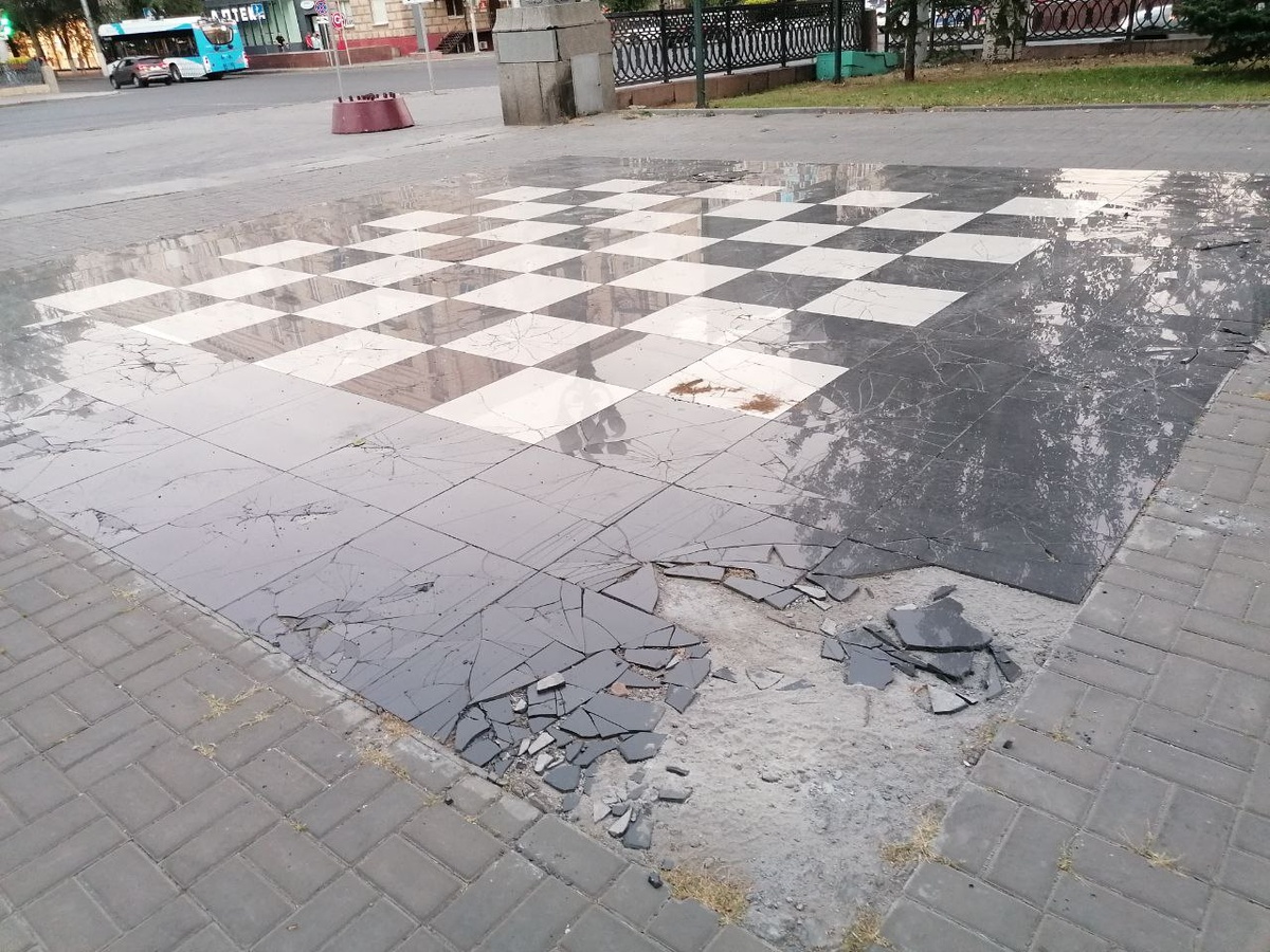 По этому случаю город запланировали масштабно украсить флагами и установить новые святящиеся конструкции, на которых жителям современного города напомнят о героическом прошлом Сталинграда. Проблема в том, что самую дорогостоящую рекламную конструкцию с флагами за 1,35 миллиона рублей символично планируют установить на осколках нынешнего благоустройства. Местом для установки двух флажных конструкций со светящимися элементами выбрали площадку, где несколько лет назад смонтировали гигантскую шахматную доску. На эскизе в госзакупке не установку флажных конструкций все выглядит неплохо. На деле шахматная доска давно находится в неприглядном виде и сама по себе может стать памятником похороненным надеждам волгоградцев на креативное благоустройство.