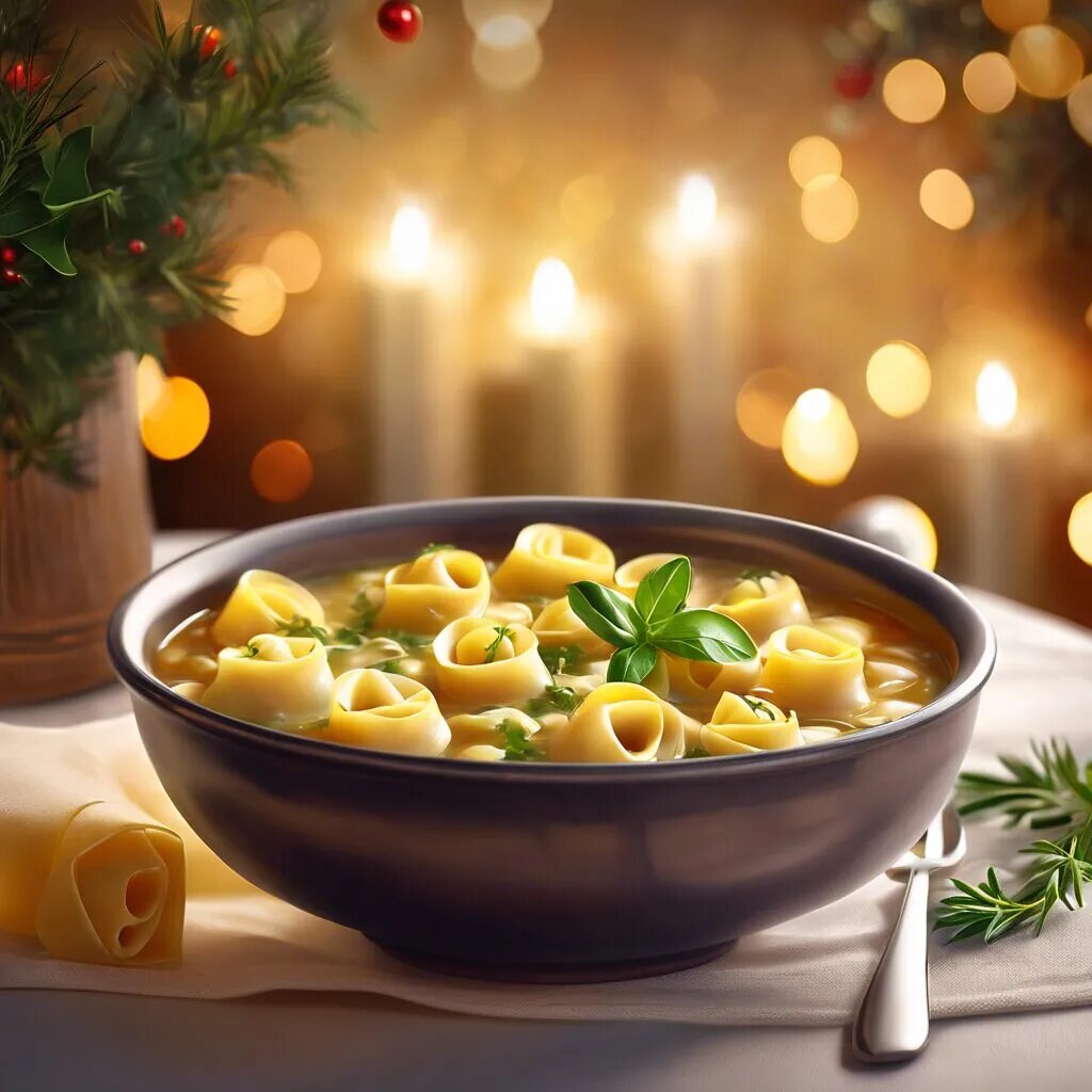 Популярным традиционным итальянским блюдом на Новый год является "Tortellini in Brodo" — тортельони в бульоне.