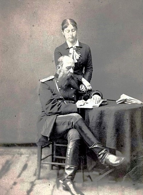 Из толпы отделилась пара – статный военный в расцвете лет с окладистой бородой и дама аристократической внешности – и спешно прошла к последнему экипажу. Это были супруги Столыпины (на фото), не так давно обосновавшиеся в городе.
