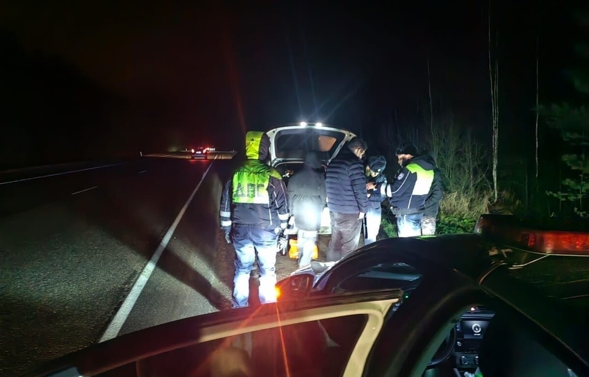 На 113-м километре трассы Р-23 «Псков» в Лужском районе Ленинградской области наряд специального батальона №2 ДПС Госавтоинспекции заметил автомобиль Audi Q5, стоящий на обочине с аварийной сигнализацией и открытым капотом. Предполагая, что водителю может понадобиться помощь, полицейские подъехали к машине. Внутри находились 33-летний водитель из Гатчинского района и его 28-летняя пассажирка из поселка Стрельна, находившиеся в состоянии сильного наркотического опьянения. Как сообщили в пресс-службе ГУ МВД России по Санкт-Петербургу и Ленобласти, на место вызвали следственно-оперативную группу. Во время досмотра полицейские обнаружили в багажнике автомобиля и карманах пассажирки около килограмма запрещенной курительной смеси и 10 граммов наркотического средства. По оперативным данным, задержанные занимались розничной торговлей наркотиками. У них также нашли тетрадь с записями о клиентах. Пара остановилась для того, чтобы найти «закладки», откуда планировала получить запрещенные вещества