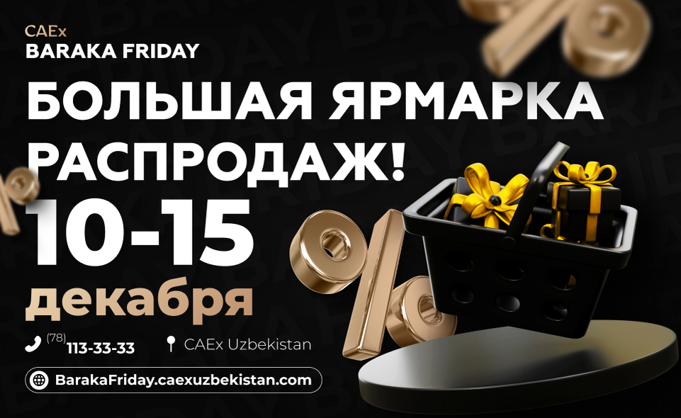 С 10 по 15 декабря в выставочном комплексе CAEx в Ташкенте состоится ярмарка распродаж Baraka Friday. Участники получат возможность не только представить свою продукцию, но и эффективно ликвидировать товарные запасы к концу года, реализовывая продукцию, накопившуюся на складах, установить прямой контакт с целевой аудиторией и значительно расширить клиентскую базу. Новый формат мероприятия объединит широкий ассортимент товаров, эксклюзивные предложения и скидки до 70 %, которые позволят посетителям сделать выгодные покупки перед праздничным сезоном. Одним из главных событий мероприятия станет розыгрыш автомобиля, в котором сможет участвовать каждый посетитель, совершивший покупку на Baraka Friday от 50 000 сумов.