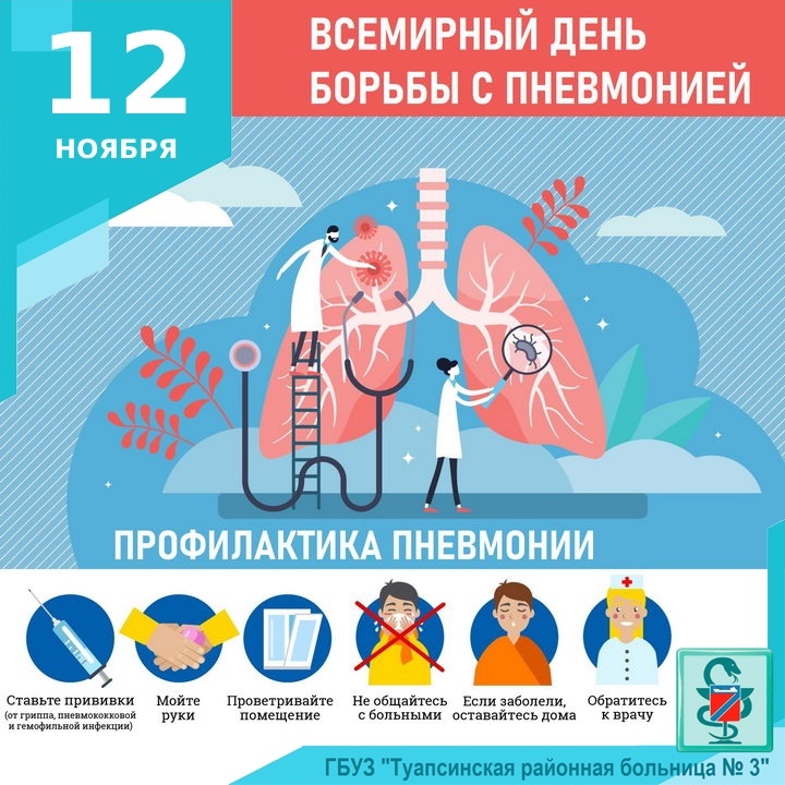 Одним из направлений профилактики пневмонии является иммунизация против пневмококковой и гемофильной инфекции и гриппа. Рекомендации по профилактике пневмонии: 1. Занятия физкультурой, прогулки на свежем воздухе, отказ от курения. 2. Здоровое полноценное питание. 3. Прививка против гриппа до подъема заболеваемости респираторными инфекциями. 4. Одеваться по погоде, избегать переохлаждений и сквозняков. 5. Соблюдение режимов проветривания и влажной уборки в помещениях. 6. В период подъема заболеваемости гриппом избегать контакта с больными, использовать маску, воздержаться от посещения мест с большим скоплением людей. 7. Мытьё рук водой с мылом как можно чаще, особенно после кашля или чихания, для обработки рук использовать антисептики на основе спирта. 8. Следить за своим здоровьем. Если заболели вы или ваш ребенок, необходимо остаться дома, вызвать врача и не заниматься самолечением. Подробнее на нашем сайте https://hosp23.ru/medevents/468.html