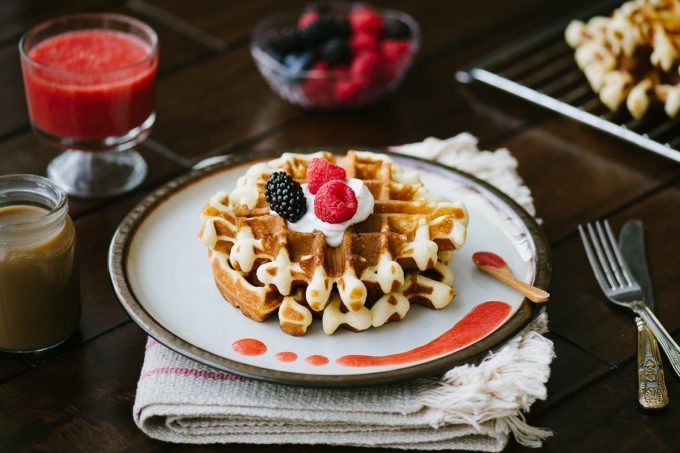 Изначально бельгийские вафли назывались брюссельскими. Хотите верьте, хотите нет, но название было изменено, потому что в США многие не могли понять, где находится Брюссель! Поэтому в 1964 году Морис Вермерш представил брюссельские вафли в США как бельгийские. Кроме того, в оригинальном рецепте в качестве разрыхлителя использовались дрожжи. В наши дни в качестве замены используется разрыхлитель, и он отлично справляется со своей задачей. Перенесёмся в сегодняшний день, когда я экспериментирую со своим рецептом вафель, чтобы они соответствовали моим желаниям. Я хочу готовить вафли, которые не размокнут через несколько минут после того, как достану их из вафельницы. Я хочу, чтобы они были мягкими, пышными, хрустящими и, самое главное, вкусными. Я считаю, что у меня получилось, и моя семья со мной согласна. Я буду рада получить ваши отзывы, когда вы приготовите эти бельгийские вафли. Налейте молоко в миску среднего размера. Добавьте в молоко уксус и оставьте, чтобы оно немного скисло. В н