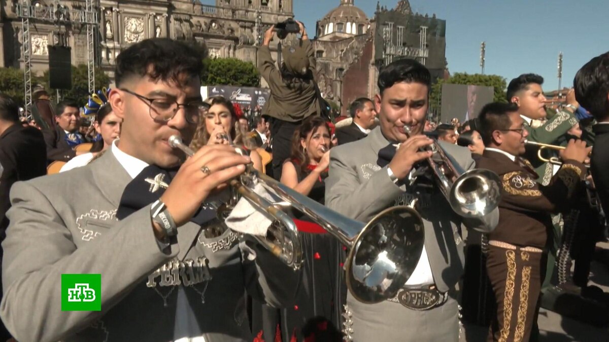 [ Смотреть видео на сайте НТВ ] В Мехико завершился первый международный Конгресс мариачи. Собравшиеся на площади Конституции в Мехико гитаристы, трубачи, скрипачи и другие музыканты исполнили самые знаменитые песни мариачи. Массовое выступление стало рекордным по количеству участников — песни исполняли одновременно более тысячи человек. [ Смотреть видео на сайте НТВ ]