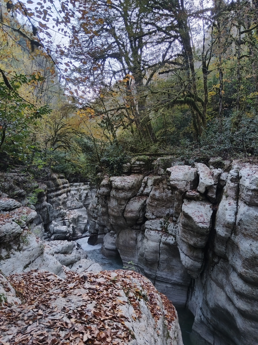 Спуск вниз занимает в среднем 15 минут. И вот мы спустились в долину реки Хоста. И там, где тропа вниз соприкасается с этой долиной, начало сказочного каньона! Высота стен - примерно на уровне 2-х этажей. Идете 200 метров