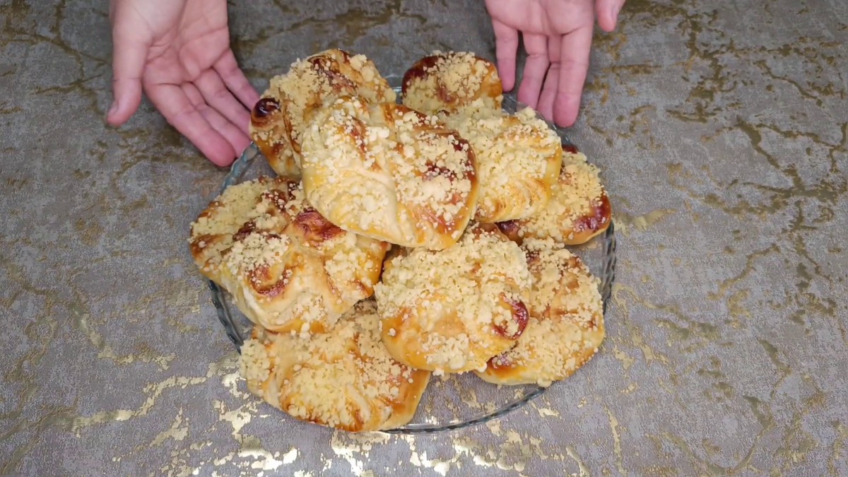 вкусная выпечка в домашних условиях быстро и просто в духовке к чаю рецепт приготовления. Вкусная выпечка к чаю! Это лучше, чем обычные пончики! ~~Рецепт~~ 250 г молока (17 столовых ложек) 1 щепотка соли 60 г сахара (2 столовые ложки) 10 г дрожжей (1 столовая ложка) 60 г сливочного масла 1 яйцо 550 г муки (19 столовых ложек) Дайте тесту отдохнуть 30 минут. начинка: 150 г сливочного масла 150 г сахара (5 столовых ложек) 150 г муки (5 столовых ложек +/-) ------ ------ ------ яичный желток 1 чайная ложка молока Оставьте на 25 минут. Выпекать при температуре 180°С 20-25 минут. =========== YOUTUBE видео ==========