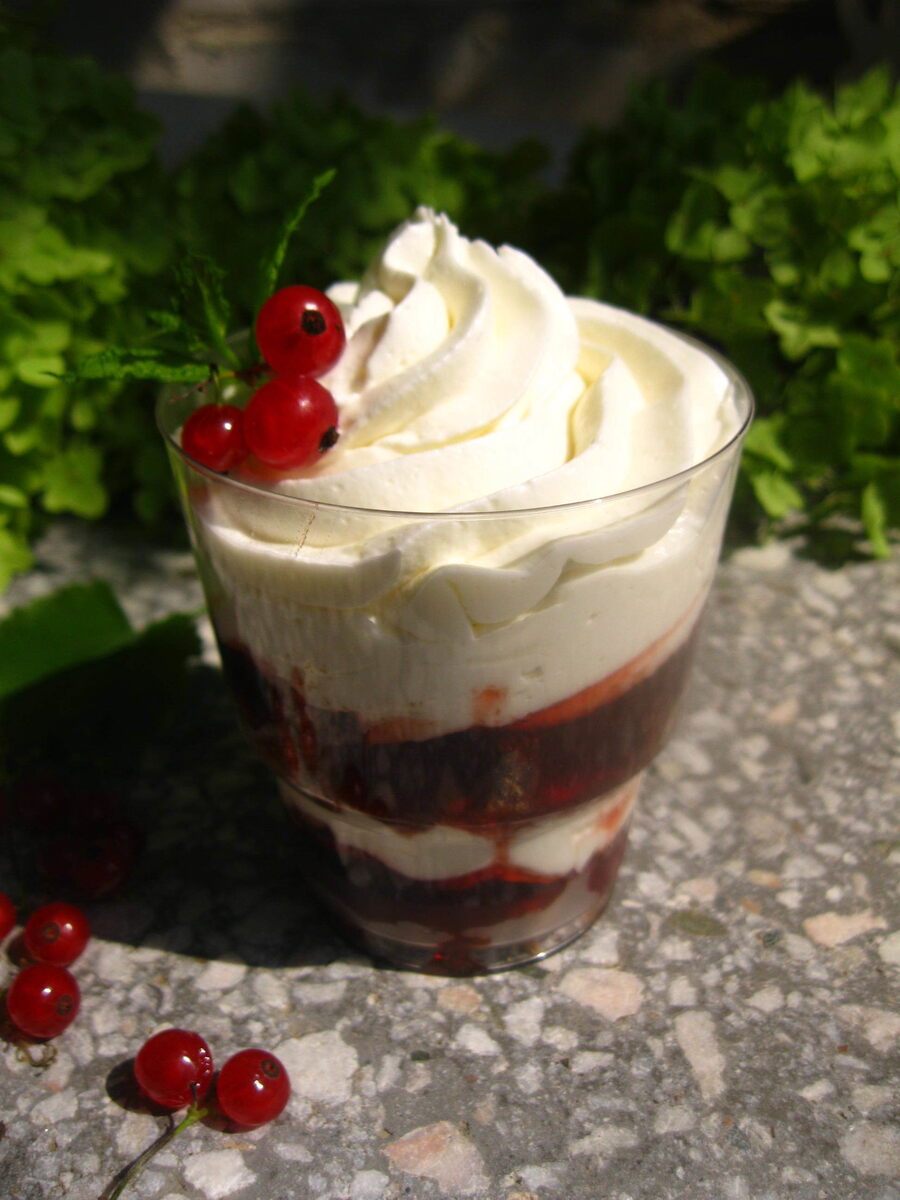 Трайфлы пришли к нам из Англии, но у них чисто русская практичность. Готовится этот десерт в стаканчиках, я его собираю из того, что есть в холодильнике. Трайфлы готовят на основе пропитанного бисквита, крема, желе или джема и ягод. Главное — это баланс вкуса. Я буду готовить трайфлы с кремом-чиз, джемом из красной смородины и шоколадным покупным бисквитом. Бисквит планировался на быстрый торт, но любимая родня схомячила один корж, поэтому будут десерты в стаканчиках. Время приготовления — 40 минут.