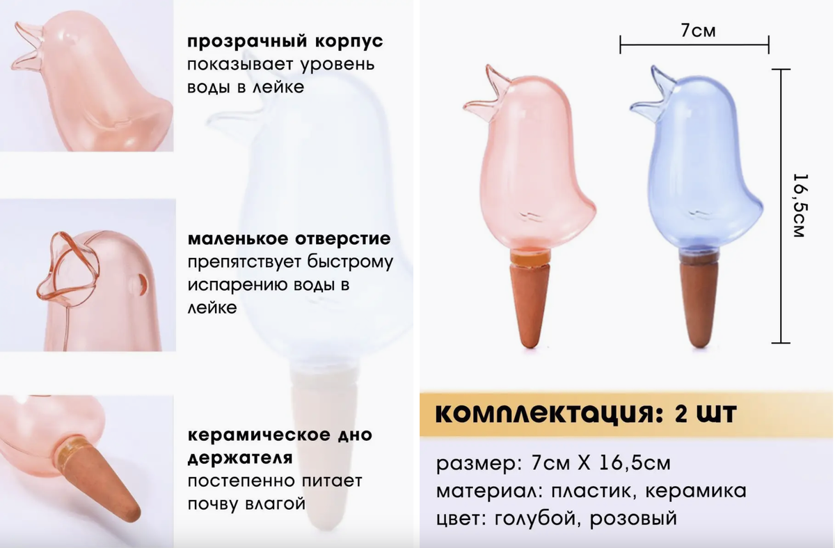 Автополив - это простой и эффективный способ полива комнатных, садовых, уличных растений. Объем в 150 мл позволяет поддерживать влажность почвы от 5 до 14 дней, в зависимости от растения. Наполнять водой, можно не вынимая капельную лейку из почвы.
