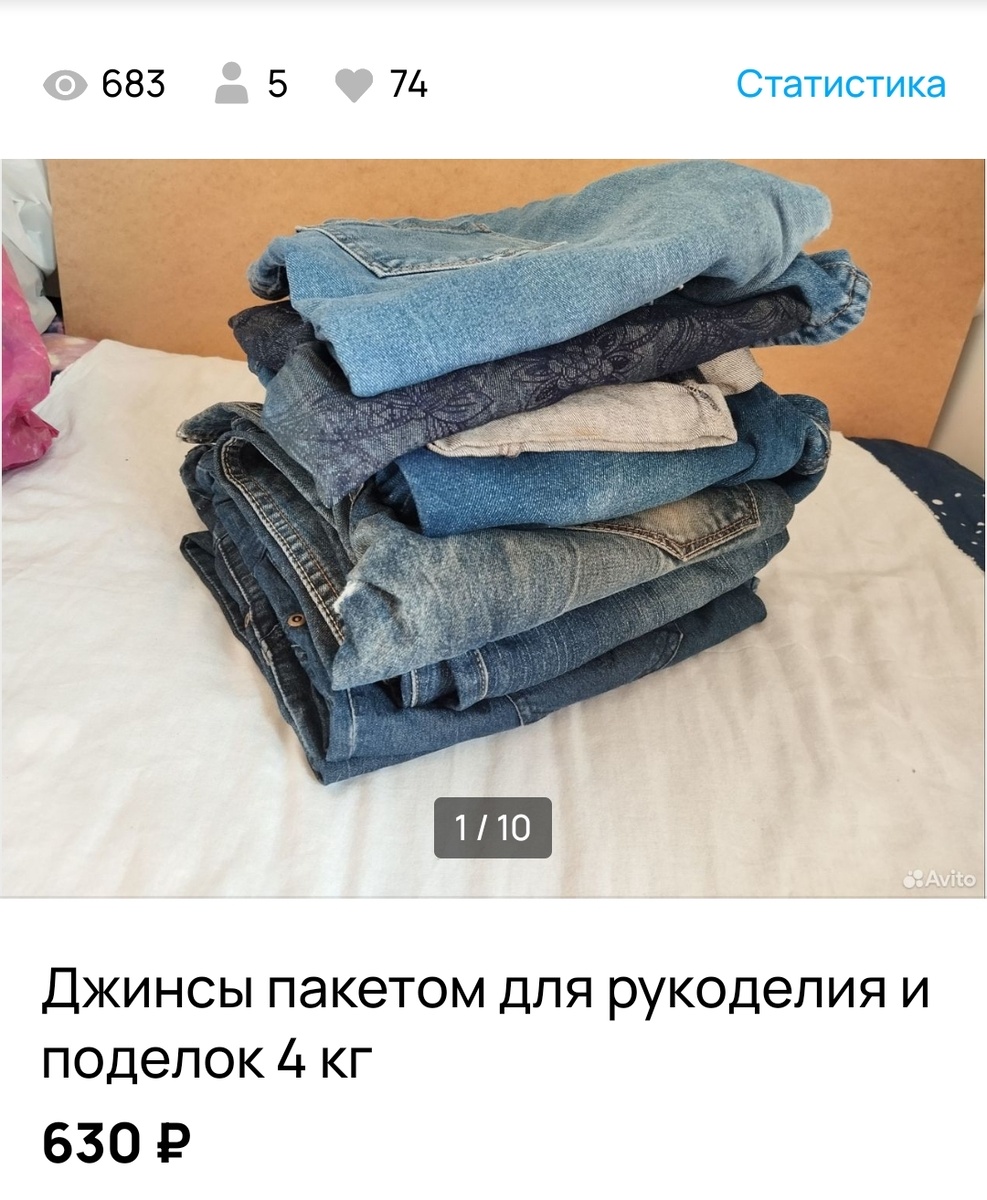 Всем привет! Сегодня про продажу вещей, которые я посылала Авито доставкой ещё в октябре, но деньги за них пришли в ноябре. Лот #1 Джинсы на поделки пакетом +586 р. 7 джинсов и джеггинсов с потертостями разной степени. Наконец все собрала и выложила. Часть с дачи привезла, две пары в Москве были, одни нашла. Просмотров, как по мне было много. Причем пока они по 450 р. были интерес был небольшой, а как начала цену повышать - начали интересоваться. Но! Половина людей же не читают ничего и многие думали, что это просто джинсы для носки. Спрашивали размеры, бренды, хотели купить за 300 р., вместо 600-700 р. (Я, как обычно, экспериментировала с ценой). И продала за "один круг". Так что смело выставляйте ненужные и испорченные джинсы на продажу. Даже одну пару рублей за 100-120 в зависимости от состояния вещи. Лот #2 Компрессор насос для авто не работающий +140 р. Не знаем, что с ним, но сломался во время поддува колеса. До этого лет 7 работал нормально. Стоял в уголочке почти год и, нако
