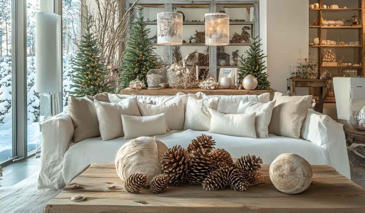 Используйте природные материалы: шишки, сухие ветки, орехи, сухоцветы. Они придадут дому натуральность и подчеркнут экологичность праздника.