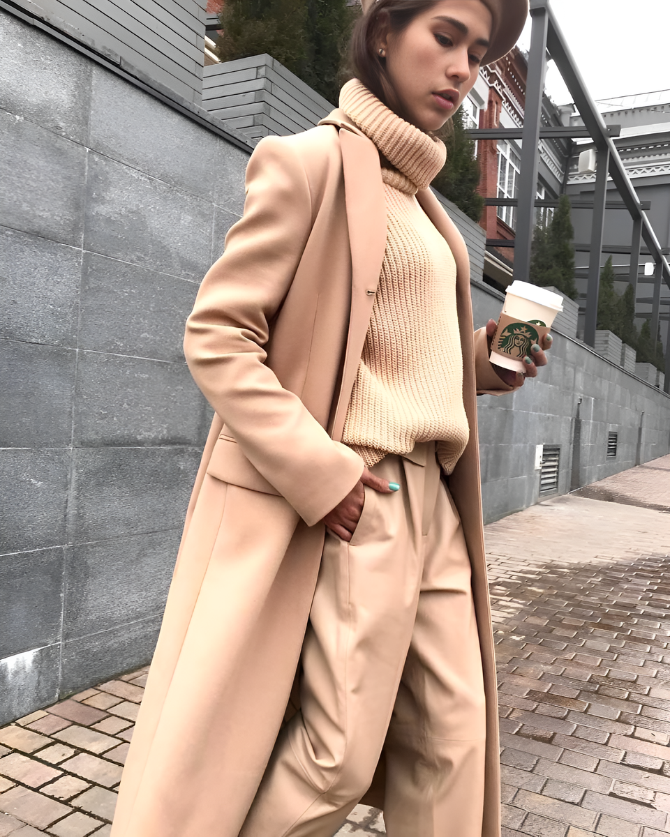 Согласитесь, что без бежевого пальто современный гардероб уже не тот. Это настоящая палочка-выручалочка: его легко сочетать с любыми вещами, и при этом оно всегда будет смотреться уместно. Не важно, куда вы идете — на прогулку, в офис или на встречу с друзьями, — бежевое пальто добавит образу стильности. Главное — научиться играть с ним, добавляя яркие акценты и неожиданные сочетания. Так оно будет выглядеть свежо и даже немного по-новому каждый раз, когда вы его надеваете. Для тех, кто не хочет сложных решений, стилисты предлагают создать образ полностью в бежевых тонах. Такой образ будет стильным, ненавязчивым, но стоит рассмотреть вариант дополнения, в виде аксессуара, который будет отличаться по тону. Несмотря на свою простоту, тотальный беж – это беспроигрышный вариант на любой случай. Не стоит забывать и о том, что беж имеет множество подтонов, с которыми можно экспериментировать, не боясь перебора. Если нужен строгий образ — добавьте костюм.