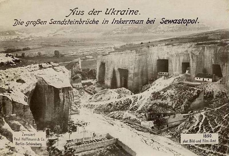 Перед вами фотография штолен Инкермана рядом с Севастополем в Крыму якобы сделанная в 1890 году немецкой фотокомпанией «Пауль и Ко» из Берлина. Но вас ничего не удивляет, когда вы внимательно смотрите на эту картинку? Например, надпись «Украина»? Во-первых, государство с таким наименованием появилось только в 1917 году, а во-вторых, самовольная передача Крыма руководством СССР из состава РСФСР в состав УССР произошла только в 1954 году. Так на кого этот фотофейк рассчитан?