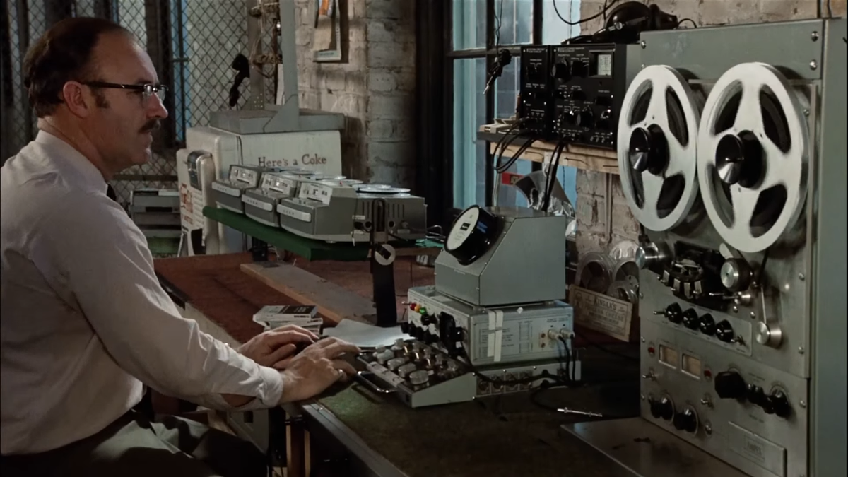 Режиссёр Фрэнсис Форд Коппола известен не только трилогией "Крёстный отец", но и множеством фильмов в самых разных жанрах. В 1974 году вышел его детективный триллер "Разговор" (Conversation) с Джином Хэкменом в главной роли. Он играет Гари Кола - эксперта в области прослушки. У него два увлечения: саксофон, на котором он играет, и непосредственно работа, которую он старается сделать на высоком уровне. - А ты на работу развлекаться ходишь?
