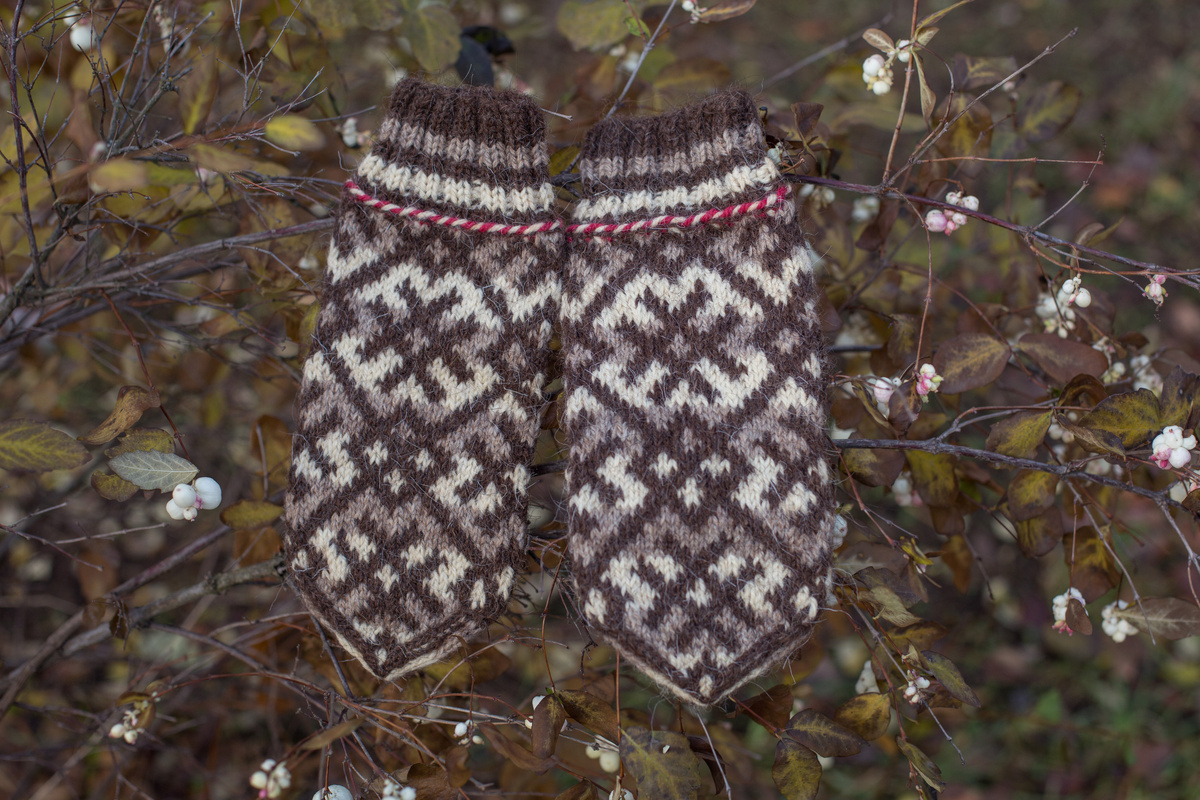 Одна из трудностей в творчестве осенне-зимнего периода - отсутствие хорошего освещения, как для работы, так и для съёмок. Когда ноябрь балует вдруг ясным днём - хочется бежать и снимать в долгожданных солнечных лучах всё, что под руку попадётся, и на спицах и готовое. Этим варежкам повезло быть отснятыми в работе, я теперь всё реже снимаю процессы, да и с вязанием у меня в этом году, прямо скажем - не густо. После работы над шалями, захотелось немного отвлечься от привычной Дундаги и попробовать другую пряжу. Не-Дундагу я беру в руки от силы пару раз в год. Здесь Троицкая верблюжья шерсть, 100 грамм/200 метров. Для узорных варежек хорошая толщина, можно взять орнамент поинтереснее и посложнее, здесь у меня на 60 петель: рукавицы мужские, есть где разгуляться (чаще вяжу на 48 петель). Светлые полосы - Троицкая "Деревенька", она потолще 100 гр/170 м, но в полотне разница почти незаметна. Верблюжья шерсть, конечно, пахнет. Запах специфический, после стирки не уходит. Моим рукам, привыкшим