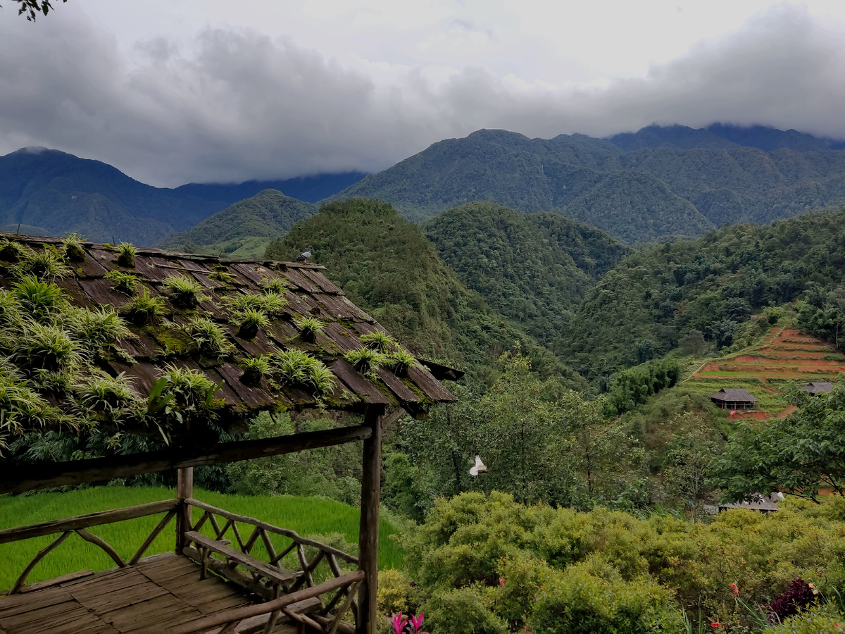 Отдельно выделю локацию, которая находится чуть в стороне. Называется это место Дом шамана, но никакого дома мы здесь не нашли, а обнаружили лишь беседки и большую скульптуру в виде очень странного традиционного музыкального инструмента хмонгов. Ну и, конечно, потрясающий вид никуда не делся.