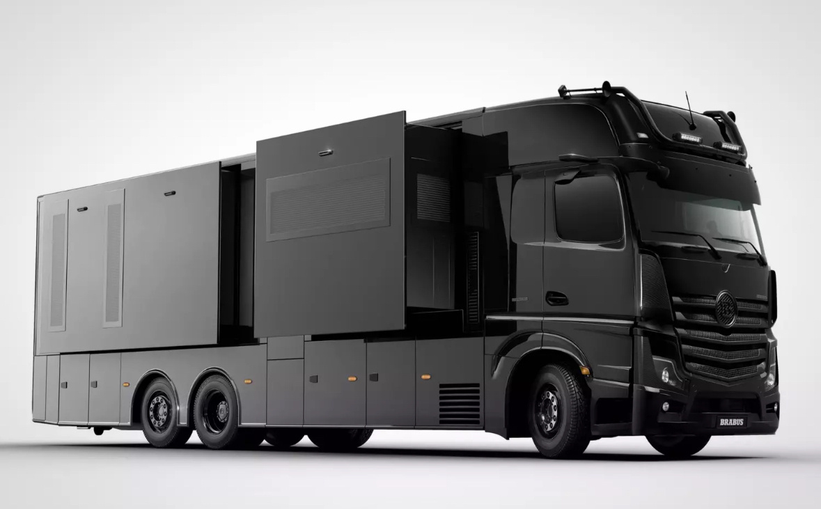 Роскошный автодом от Brabus на базе Mercedes-Benz Actros Ателье Brabus вместе с бельгийской компанией STX Motorhomes представило настоящий шедевр — автодом на базе Mercedes-Benz Actros. Этот проект носит название Big Boy 1200, и он поражает своими размерами и роскошью. Снаружи это 12-метровый черный гигант, который внешне напоминает огромный параллелепипед. Но стоит лишь заглянуть внутрь, и перед вами откроется более 30 квадратных метров шикарно обустроенного жилого пространства. Простор и комфорт Ширина трехосного грузовика составляет 2,5 метра, а высота достигает четырех метров. К этому впечатляющему размеру добавляются четыре выдвижных модуля с электроприводом, которые еще больше увеличивают внутреннее пространство. Первое, что встретит вас внутри — это кухня-гостиная, плавно переходящая в просторную спальню шириной 4,5 метра. Внутри хватает места для всех: тут и двуспальная кровать, и два дивана, и дополнительное односпальное место над водительской кабиной. Полный набор удоб