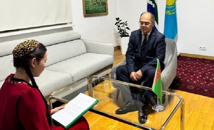 Об этом профессор Евразийского национального университета имени Гумилева заявил в интервью туркменской студентке Акгозель Расуловой. Студентка пятого курса Института международных отношений Министерства иностранных дел Туркменистана Акгозель Расулова, находящаяся на практике в посольстве республики в Астане, взяла интервью у профессора Евразийского национального университета имени Гумилева, обладателя юбилейной медали «К 300-летию Махтумкули Фраги» Шарипа Амантая. Об этом сообщила пресс-служба туркменской дипмиссии. Шарип Амантай высоко оценил творческое наследие Махтумкули, добавив, что казахи воспринимают великого классика как своего родного национального поэта. Почти все его стихотворения переведены на казахский язык. «С момента обретения странами независимости между Туркменистаном и Казахстаном сложились добрые, тесные и прочные отношения, которые имеют конструктивный и гармоничный характер. Многовековые братские и дружественные связи двух народов, имеющих общие исторические и духо
