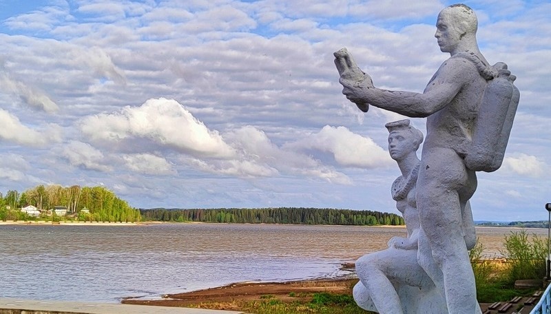 Скульптура «Аквалангистам» была установлена в 1976 году на берегу пруда к 220-летию Нытвенского завода.