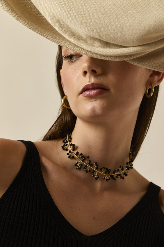 В данном случае у нас есть большой участок тела, который нам нужно заполнить, и делать мы это можем с помощью шейных украшений.