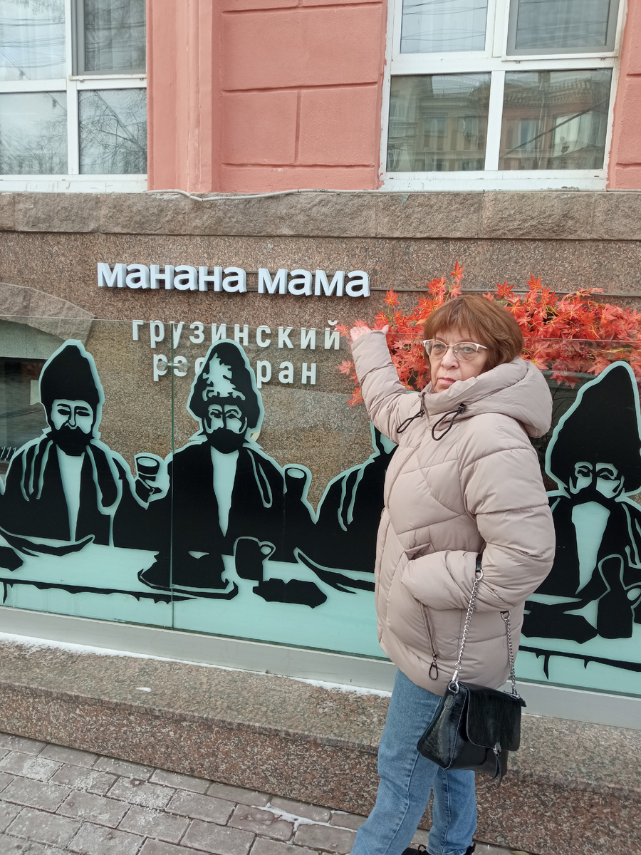 В этот раз узбекскую кухню сменила грузинская. Время обеда, время бизнес ланча. Я наверное когда-то в прошлой жизни жила на востоке, люблю восточную кухню. Хотя... Что я только не пробовала... Не пробовала турецкую кухню, болгарскую, египетскую, немецкую, татарскую, да практически никакую иную не кушала. Ну и ладно, меня и тут неплохо кормят. Салат с жаренным сулугуни . Хинкали. Я открою тайну, я их тоже почти умею готовить, осталось добиться делать такой длинный хвостик. Фисташковый торт. Ела в наглую одна, муж был после стоматолога с замороженными деснами. Понравилось очень и людей много приходило обедать, особенно мужчин в галстуках. За соседним столиком сидели дамы за 70, праздновали чьё- то день рождение, так здорово. А вот и фото на память. Вот такой красавчик встречал нас на улице. Когда поехали домой, проезжали мимо центра ЯМ, где проходила лучевую терапию и я с удивлением для себя отметила, что не боюсь это здание. А вот доказательство того, что я другая. Уральские горы.