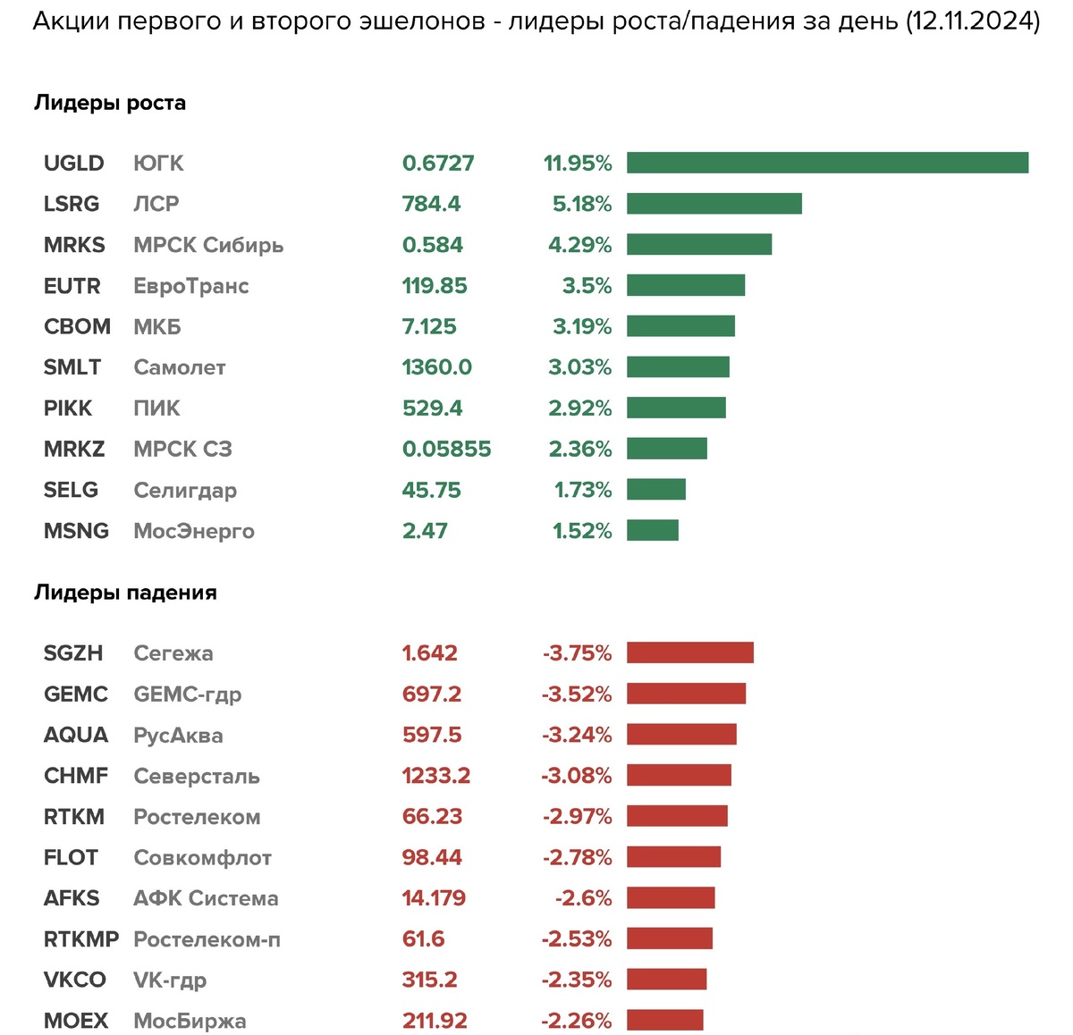 По итогам основной сессии 12 ноября индекс Московской биржи потерял около 1%. Похоже, что запас позитивных новостей иссяк и рынок опять загрустил.