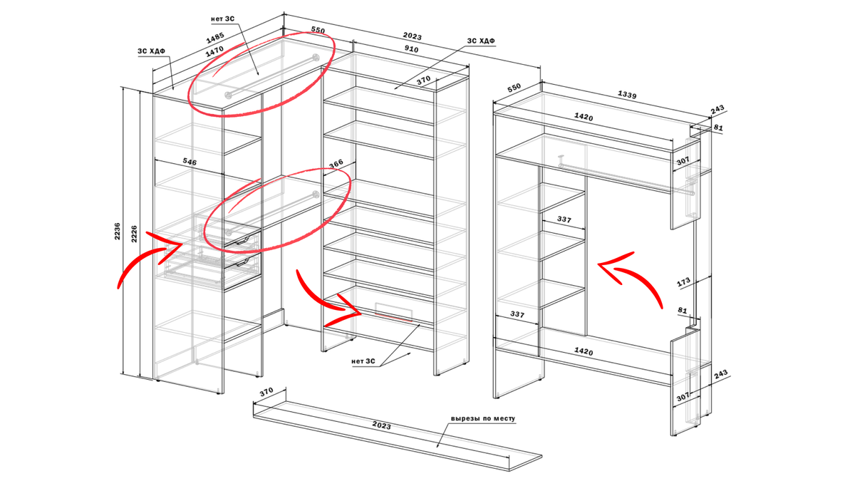 Уже на этом этапе планируем обратиться к специалистам по изготовлению шкафов-купе на заказ, чтобы у вас получился аккуратный и технически правильный эскиз, учитывающий все вещи.
