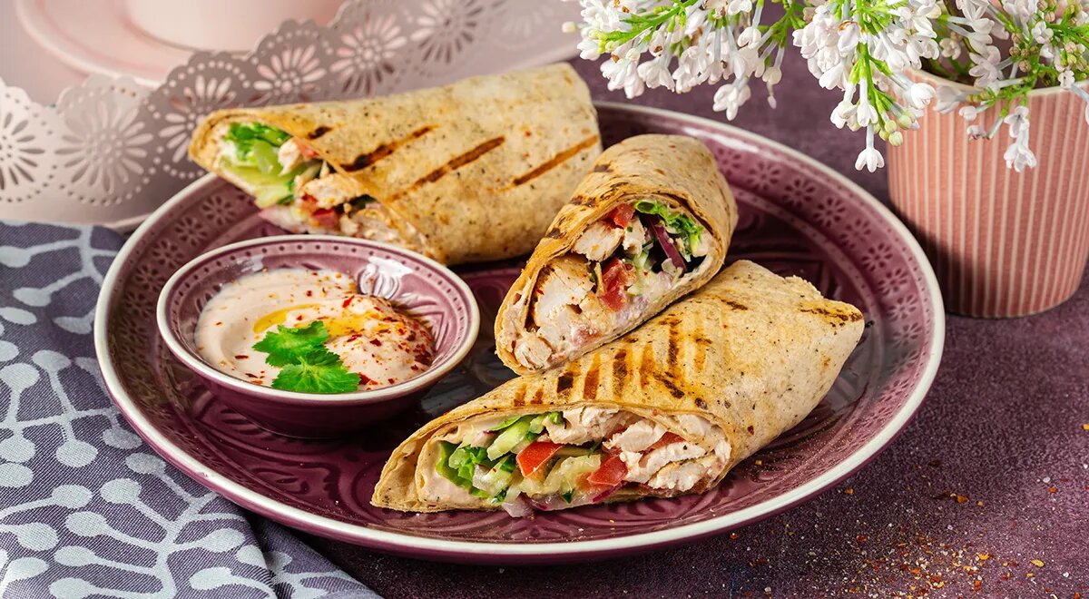 Это тот случай, когда здоровая еда еще и вкусная. Для курицы: Для подачи: Для соуса: Подготовьте продукты для ПП-шаурмы. Куриное филе обсушите, приправьте солью, перцем, пряными травами и паприкой, вотрите специи. Разогрейте духовку до 200°C. Заверните филе в фольгу, оставив небольшой зазор, и добавьте немного теплой воды. Запекайте около 35 минут. Остудите курицу в фольге 10 минут. Пока она остывает, подготовьте овощи и листья салата. Вымойте огурцы и помидоры, обсушите. Огурцы нарежьте длинными тонкими полосками, затем соломкой. Разрежьте помидоры пополам, удалите лишнюю мякоть и сок. Нарежьте соломкой, как огурцы. Нарежьте красный лук кольцами, полейте лимонным соком и аккуратно перемешайте. Салатные листья промойте и обсушите. Смешайте в миске натуральный йогурт, томатный соус и горчицу. Добавьте соль, перец и тщательно перемешайте. Курицу нарежьте соломкой. На листы лаваша нанесите соус, оставляя по краям примерно 7 см. Выложите на соус листья салата, лук, огурцы, помидоры и куриц