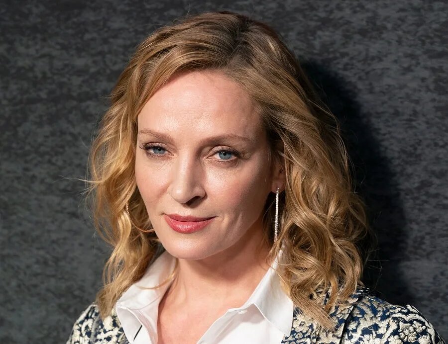 Ума Турман — американская актриса старше 50 лет, которая знает, как стильно носить светлые волосы (блонд). Здесь она выбрала золотистую основу с едва заметными бликами и темными корнями. Ума Турман дополнила образ взъерошенными пляжными волнами до плеч и простым боковым пробором. Притягательна, харизматична, талантлива и красива! Да, она мне нравится по многим фильмам, в том числе великого Тарантино.