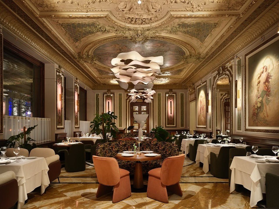 Команда VILKA.MGZN, пришла оценить перезапуск московского ресторана Savoy, и это место действительно впечатляет! За его дверями буквально оживает история, как будто попадаешь в Москву начала XX века с ноткой современного стиля. Поговаривают, что каждый элемент ресторана, от роскошных залов до блюд, тщательно продуман и выверен, чтобы подчеркнуть его легендарный статус. С первых минут чувствуешь себя в особом месте: элегантные залы с росписями и золотыми узорами, знаменитая саламандра у входа, статуя Врубеля и та самая «ложа Маяковского». По легенде, когда-то здесь декламировал стихи Сергей Есенин, а осетров вылавливали прямо из фонтана. Савой словно говорит нам: «Горю, но не сгораю!» — в этом его сила и магия. Пространство переосмыслили под руководством дизайнеров из бюро Марии Жуковой. Они сохранили классический стиль, добавив изящной современности, которая особенно чувствуется в сочетании роскошной мебели и стильного освещения. Новый Savoy выглядит так, будто только что сошел с полот