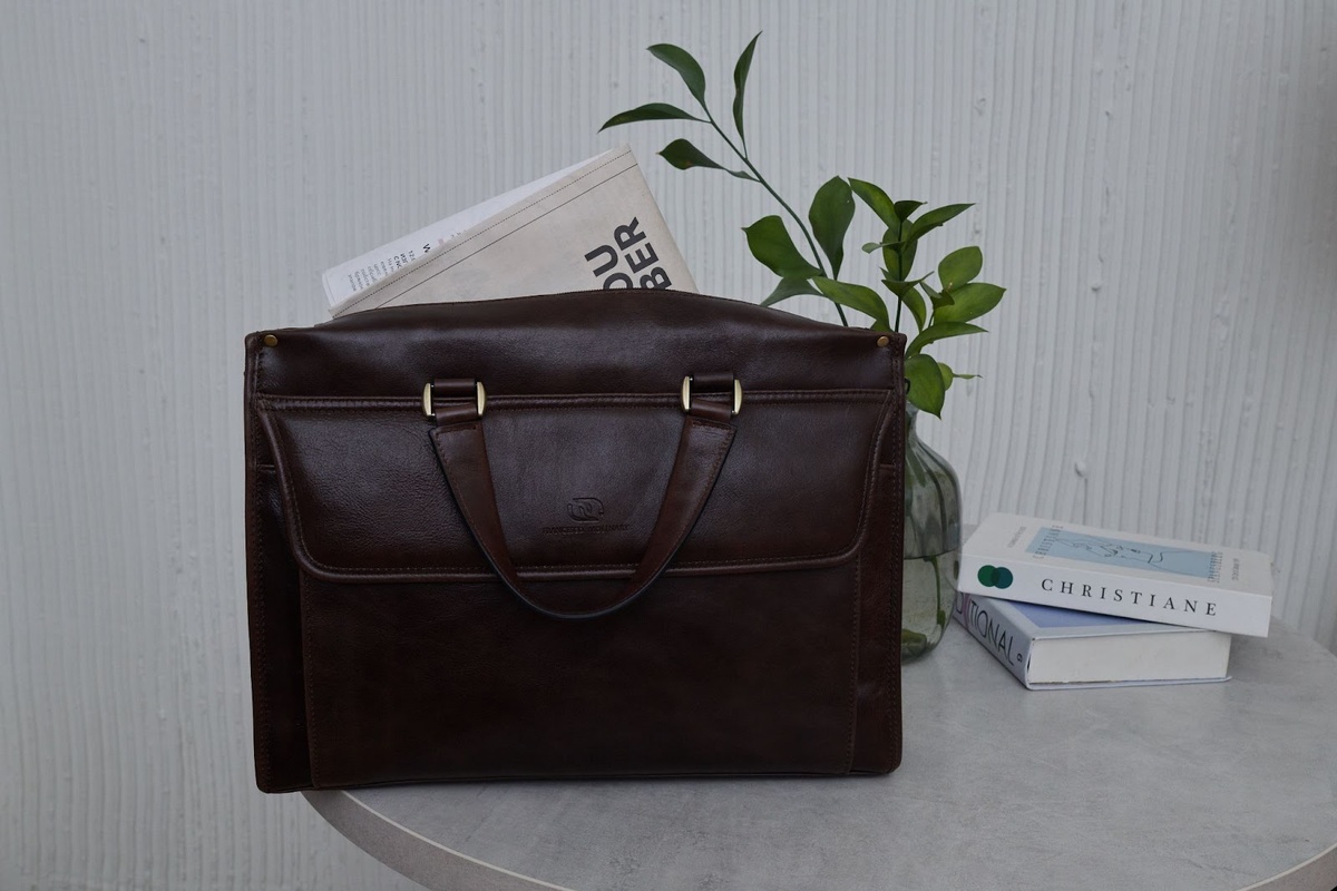 Для сумки, которая будет использоваться как в офисе, так и в командировках, важно выбрать прочный материал, стойкий к износу и повреждениям: