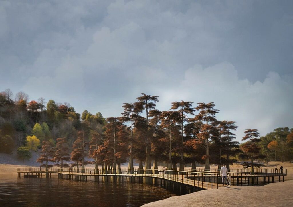 На озере поставили ограждения, однако множество туристов игнорировали их и устраивали фотосессии, случайно повреждая корни уникальных кипарисов. Местный житель решил создать проект прогулочной зоны, которая позволит подойти к деревьям поближе, при этом ограничив их от контакта с корнями. — Новый променад может стать не только новой частью современного городского благоустройства, но и даст возможность деликатного взаимодействия человека с природой. Туристы смогут удобно и безопасно приближаться к деревьям в любое время года, чтобы любоваться кипарисовой рощей и устраивать фотосессии с новых ракурсов,— сообщил автор проекта. Прогулочная зона по контуру деревьев также позволит защитить их от высыхания независимо от уровня воды.