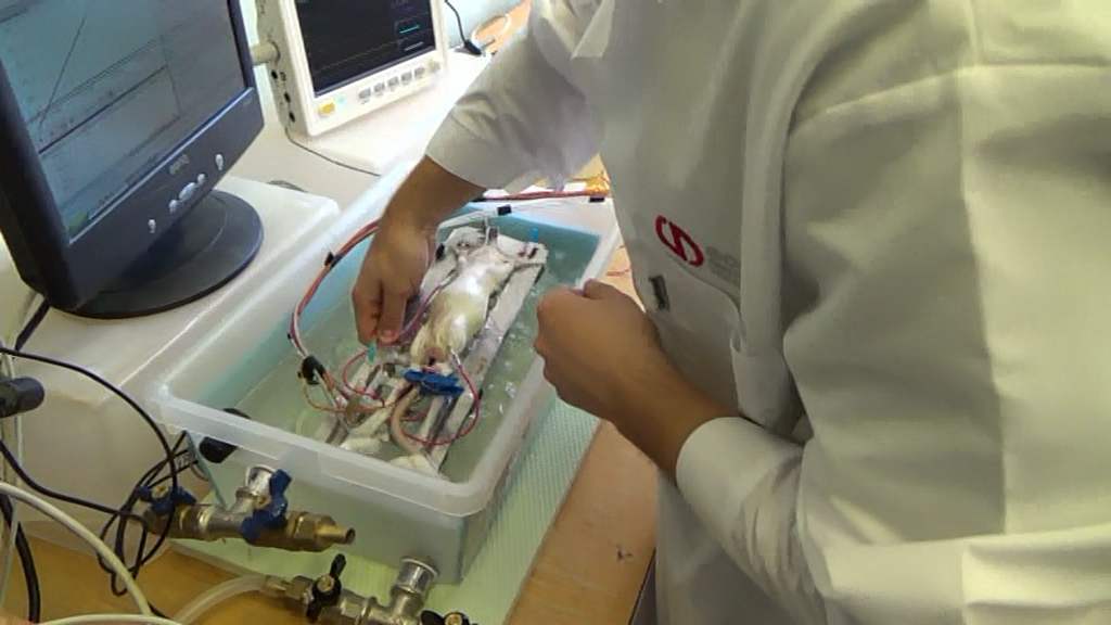 Для этого был предложен оригинальный способ подводного применения стандартного полуоткрытого контура искусственной вентиляции легких (ИВЛ), что впервые позволило осуществить глубокую гипотермию мелких лабораторных животных (крыс), находящихся полностью в подводном положении в условиях продолжительного многочасового эксперимента.