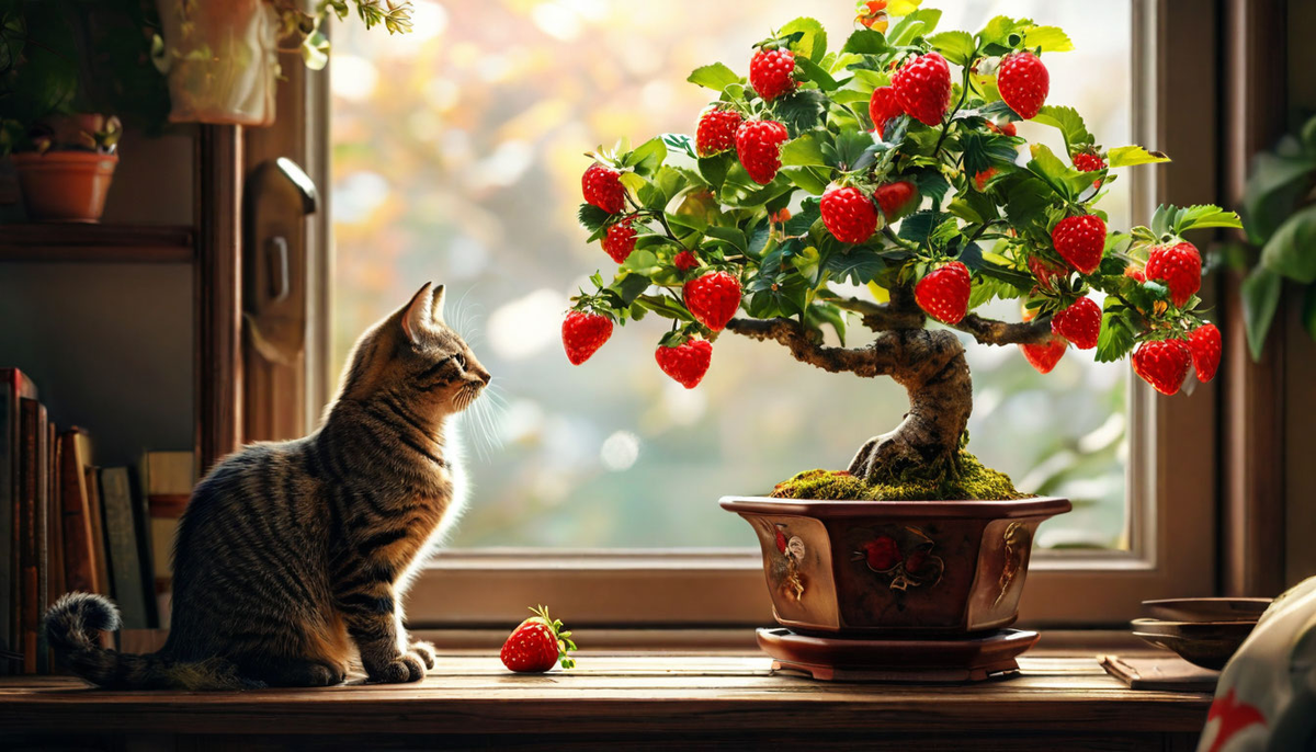 - Клубника: Несмотря на то, что это не дерево, клубника идеально подходит для выращивания в стиле бонсай. Компактные кустики, усыпанные ароматными ягодами, украсят ваш подоконник.
