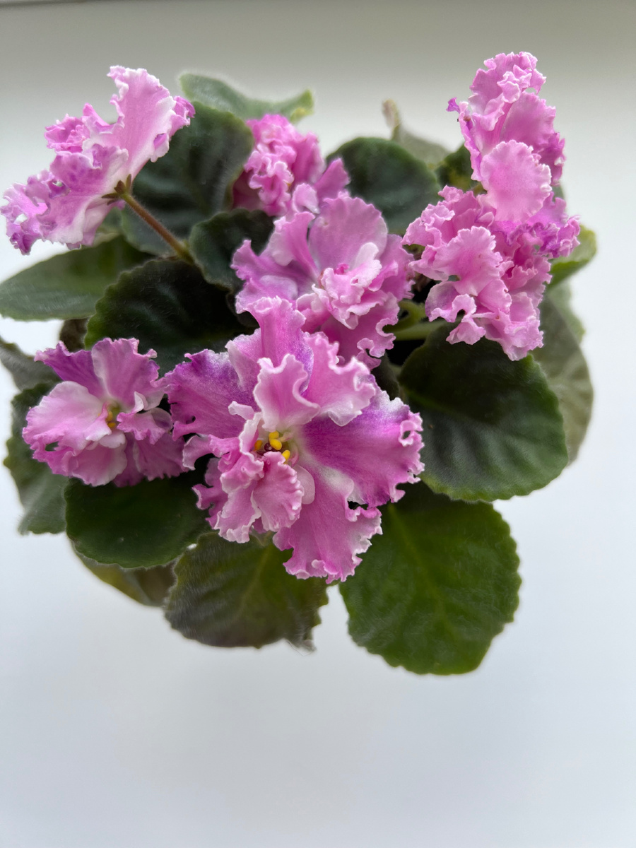 Здравствуйте! Позвольте представить вам мою самую любимую фиалочку. Как можно не любить её? Она так поднимает настроение в эти хмурые осенние дни. Розетка у фиалочки плотная и компактная, а листики небольшие, сердцевидной формы. Цветёт она охотно и обильно, а размножается очень легко. Но особое очарование ей придают её необыкновенно нежные цветы: крупные белые звёзды с розовыми напечатками и милой рюшечкой, которая похожа на юбочку выпускницы. Ну просто очаровательная! А это ее сестренка, не близняшка, а двойняшка. Это спорт. У него цветы тёмно-розового цвета и присутствует некоторая махровость. Наверное, кому то понравится и такой вариант цветения, но мне больше нравится та фиалочка, которая цветёт по сорту. Её цветы невероятно нежные, и из всех цветущих сейчас фиалок именно она притягивает взгляд.