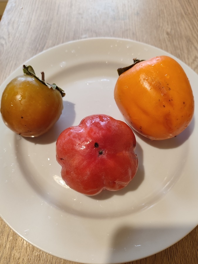 Осень сезон хурмы. В магазинах появилось несколько сортов. Расскажу какие сорта понравились, и как я выбираю хурму. В магазине было сразу 3 разных сорта, их я и купил. Хурма Королек шоколадная, хурма инжирная и хурма Свечка. 1) Хурма Королек шоколадная. Никакого шоколада внутри конечно не обнаружилось, и по вкусу обычная, выдающейся сладости нет. Только цвет действительно шоколадный. Мякоть волокнистая, в меру сочная, другие сорта оказались сочнее. Слегка вяжет. 2) Хурма инжирная. Имеет характерную форму дольками. По цвету яркая, даже красноватая. Мякоть волокнистая. Сочная, сладкая. Вяжет меньше других сортов. 3) Хурма Свечка. Ярко оранжевая. Плоды крупного размера. Мякоть нежная. Сладкая. Вяжет слегка. Свечка мне понравилась больше других . Популярный сорт, в магазинах часто бывает. Выбираю Хурму я очень просто, трогаю рукой. Если плод мягкий, то можно брать. Твердые плоды всегда слишком сильно вяжут, есть невозможно, язык становится деревянным. Есть один народный способ как сделать