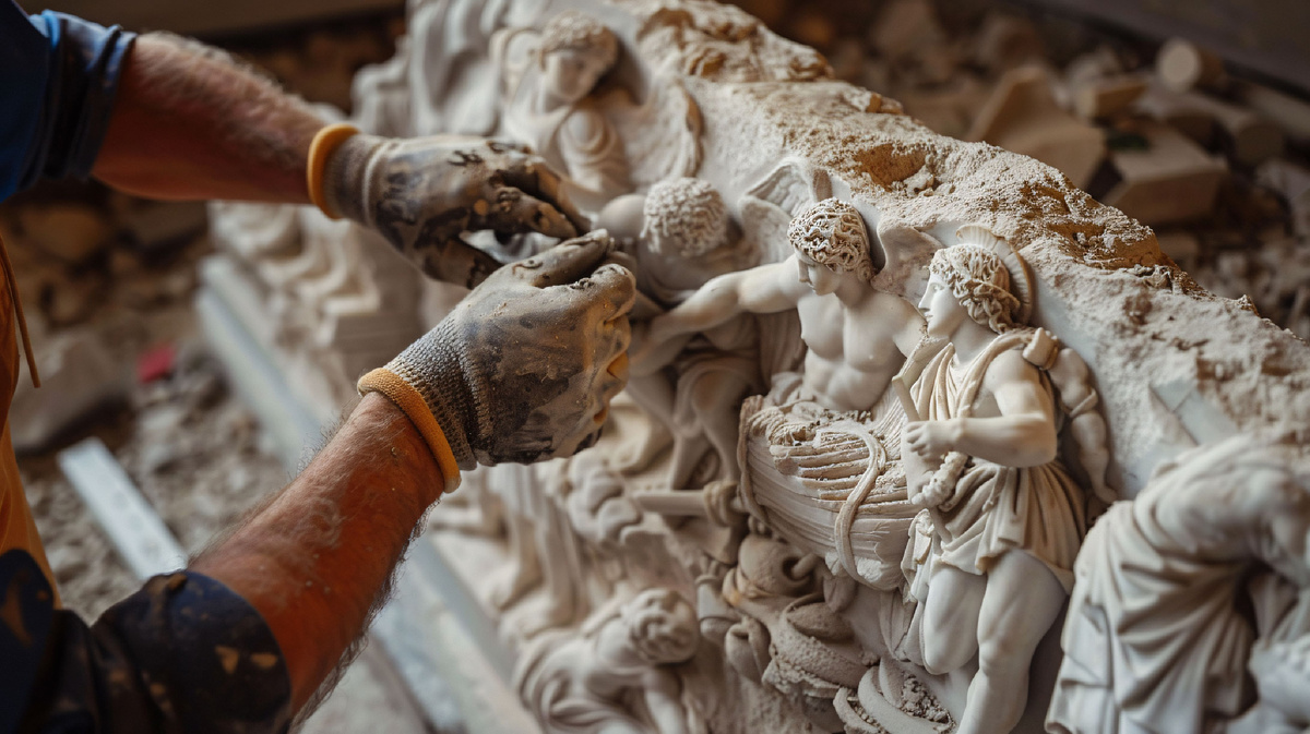 Производство крупных и сложных элементов, таких как колонны или статуи, требует особого подхода: