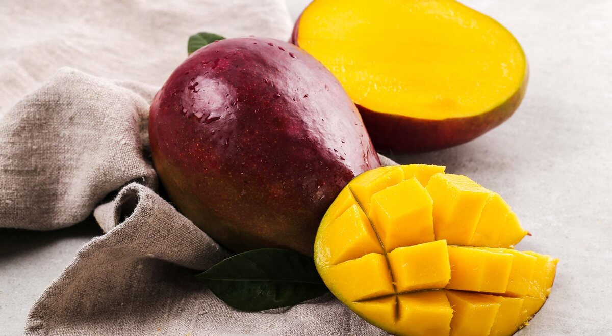 Манго — плоды дерева семейства Сумаховые, его родственниками считаются кешью, фисташки и сумах. Растение достигает 30 метров в высоту, имеет густую крону и крупные листья. Плодоносить оно начинает не сразу, а спустя несколько лет. Плоды с тонкой несъедобной плотной кожицей и сочной мякотью весят в среднем 300—700 г. В центре — продолговатая плоская косточка. Есть много видов манго разных вкусов, размеров и оттенков. Кожица может быть зеленой, желтой или красноватой. Манго выращивают в странах с тропическим и субтропическим климатом. Основные экспортеры фрукта — Индия, Индонезия, Пакистан, Мексика, Бразилия и Китай. В Россию манго экспортируют из Перу, Китая, Бразилии, Вьетнама и Египта. В 100 г свежего манго содержится: Пищевых волокон на такой вес приходится 1.5 г. Мякоть содержит витамины А, Е, К и группы В. Плоды богаты микроэлементами, среди которых калий, цинк, фосфор, магний и кальций. Больше всего в 100 г продукта содержится витамина С — 36.4 мг (норма в сутки для
