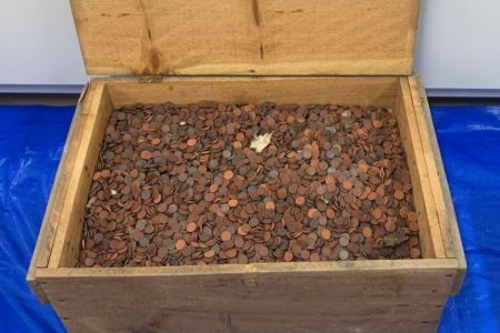 На задворках старого склада в японском городе Киото были найдены 15 деревянных ящиков, заполненных доверху необычными монетами времен Второй мировой войны. Эти монеты, известные как «мабороси» или «фантомы», изготавливались из керамики так как Япония столкнулась с острым дефицитом металла. В условиях войны, когда металл был необходим для производства оружия и боеприпасов, японское правительство приняло решение о выпуске временной валюты из керамики. Компания Shofu Industry Corporation, специализирующаяся на производстве керамических изделий, стала одним из главных производителей этих необычных монет. Всего было выпущено около 15 миллионов «мабороси”, но большинство из них после войны было уничтожено, чтобы не допустить их попадания в обращение. Именно поэтому их и прозвали «фантомами». Как говорят специалисты, находка представляет немалую историческую ценность. Монеты номиналом в один сен, с изображением горы Фудзи и цветущей сакуры на одной стороне, являются символом японской культур