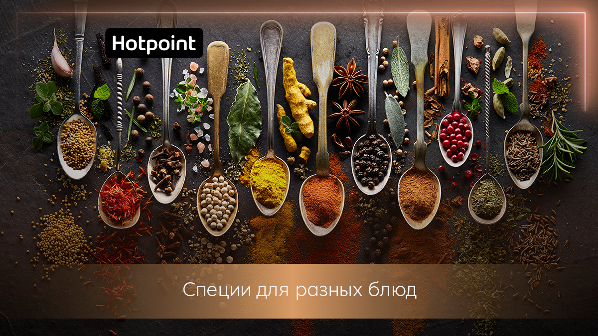 В сочетании специй и приправ между собой не существует строгих правил. Не бойтесь искать свои яркие комбинации, но знайте меру, поскольку избыток пряностей перебивает естественный вкус и аромат продуктов. Решайтесь на новые рецепты, а техника Hotpoint поможет воплотить в жизнь любые кулинарные задумки.
