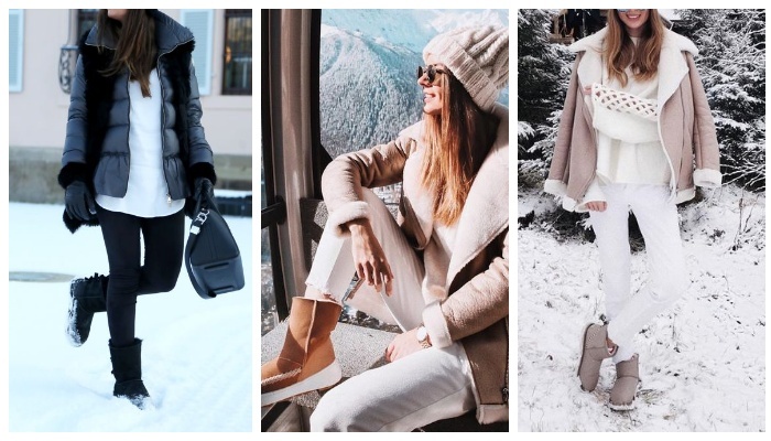 По мнению стилистов, угги остаются актуальными в холодное время года. Нет более удобной и теплой обуви для зимы. В этой статье эксперты моды предложат несколько стильных образов с уггами и поделятся советами по их комбинированию. Оставайтесь с нами, вас ждет много полезной информации для тех, кто следит за модными трендами. Давайте начнем с популярных моделей, которые не только согреют вас зимой, но и добавят стиля вашему образу. В этом сезоне в тренде как минималистичные варианты, так и угги с меховыми вставками, крупной фурнитурой, контрастной подошвой и помпонами. Что касается цветовой гаммы, здесь преобладают серые, бежевые, черные, нюдовые и коричневые оттенки - классика, которая прекрасно сочетается как с однотонными, так и с принтованными нарядами. Трикотажные брючные костюмы смело можно комбинировать в следующем сезоне с уггами, объемными пуховиками, а также вязаными шапками с меховым помпоном. Базовые угги черного цвета + джинсы скинни + удлиненный минималистичный свитер + объ