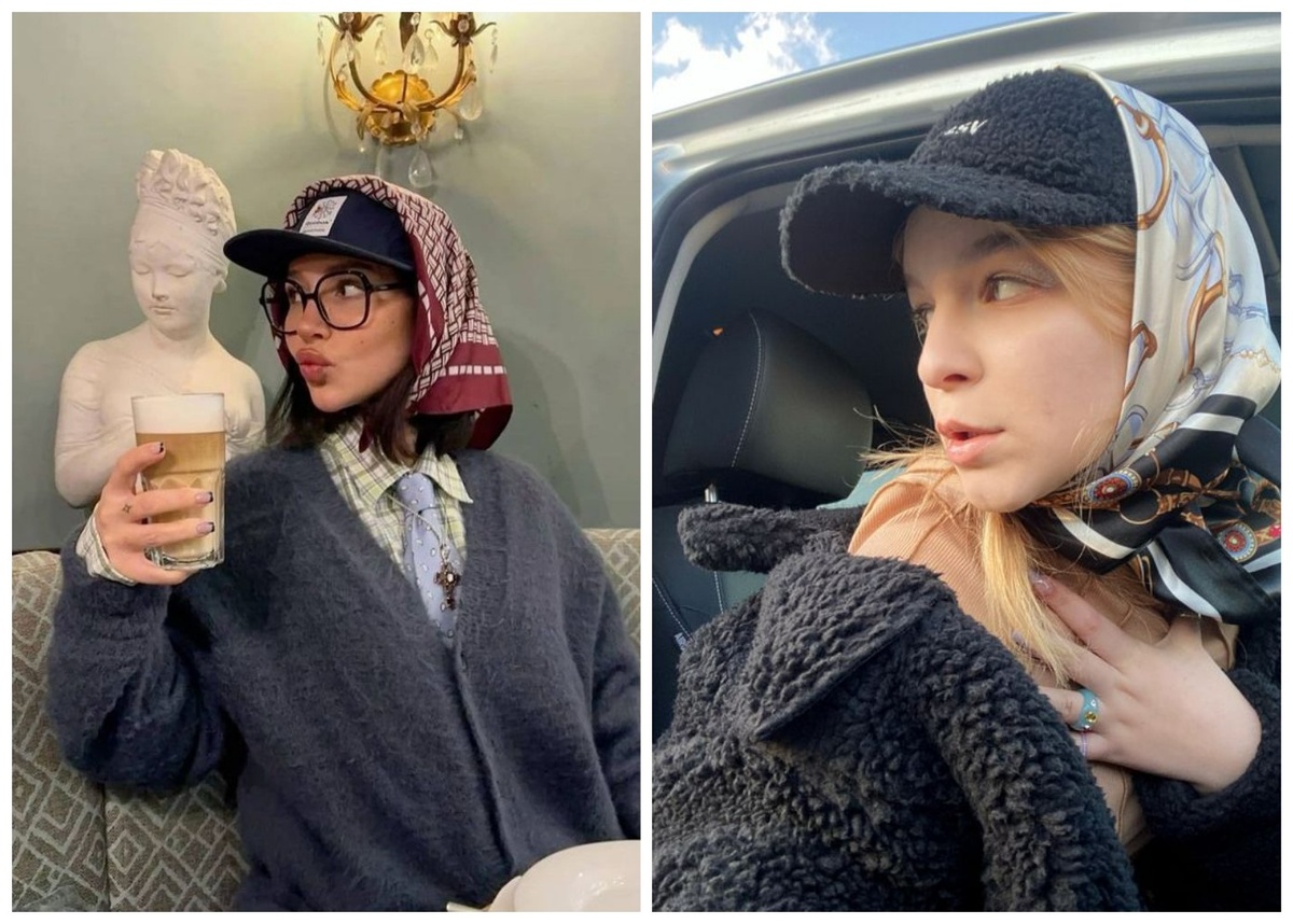 Если вы не готовы расставаться с бейсболкой надолго, а температура на градуснике с каждым днем предательски ползет вниз... Ловите лайфхаки, как носить бейсболку и не отморозить уши. Они устроят даже самых бдительных мам! Дуэт «бейсболка+платок» пришел к нам с подиума пару лет назад. Да так и остался как рабочий вариант для холодов у стильных мира сего (спасибо Хайли Бибер). Этот модный трюк дает нереальный простор для экспериментов! Среди беспроигрышных вариантов: пестрый платок и бейсболка со спортивным лого (например, культовых New York Yankees или Los Angeles Dodgers). Вызов для продвинутых: сочетать бейсболку и платок с разными принтами. Причем носить платок можно как на бейсболку, так и под нее. Бейсболки с прямыми и изогнутыми козырьками создают совершенно разное настроение у образов, как и материал платка. Не вдохновиться такими комплектами просто невозможно, поэтому смело используйте этот трюк в своих нарядах. Это повышает вариативность, которую женщины просто обожают в гардеро